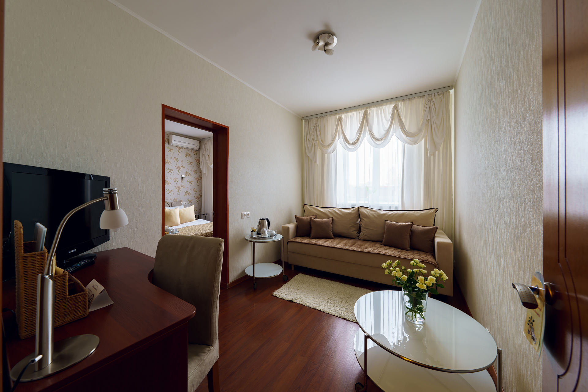 - Рабочая зона. В Вашем распоряжении письменный стол, удобный стул и настольная лампа. Вы сможете подготовиться перед Важным совещанием или презентацией.